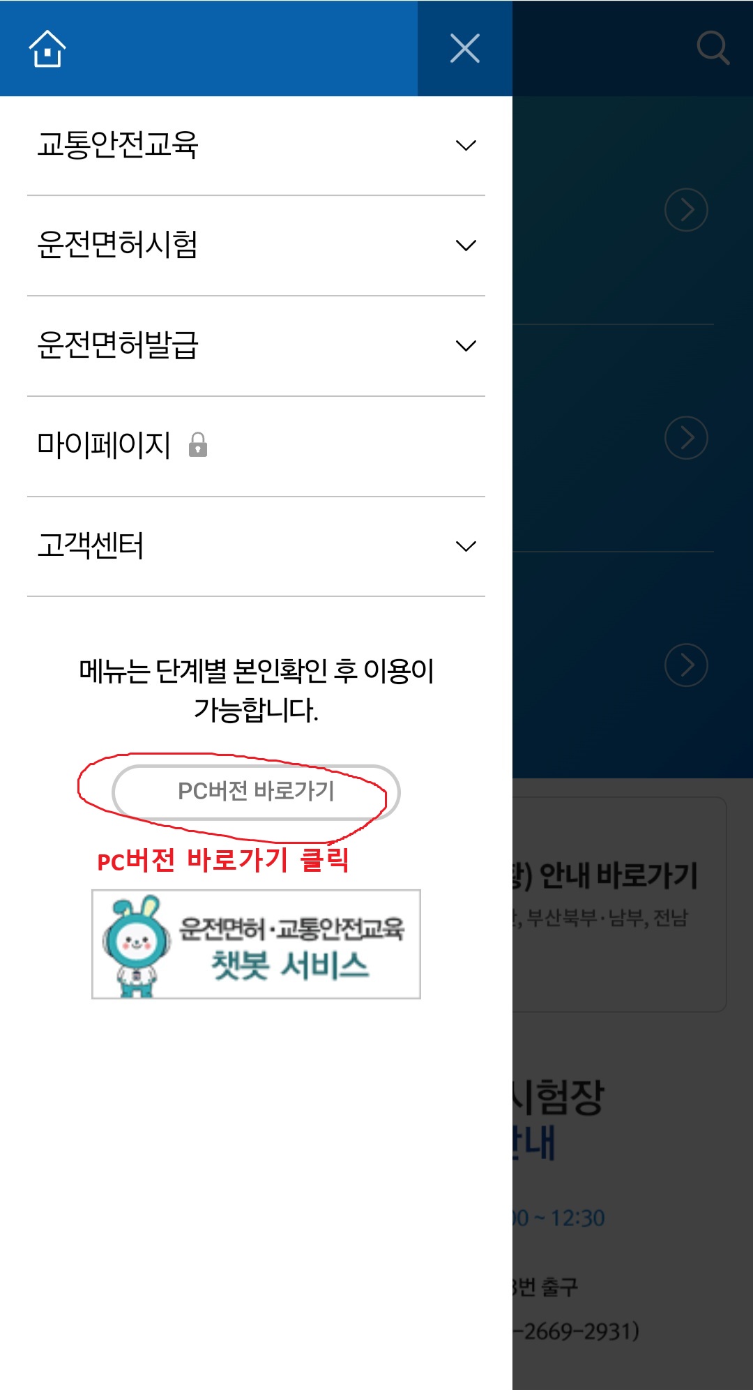 - 운전면허 시험에서 '학과시험문제' 클릭