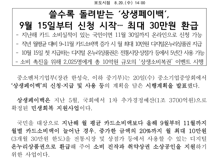 "쓸수록 돌려받는다!" 작년 한 해, 많은 분들의 소비 생활에 활력을 불어넣었던 정부의 '상생페이백' 프로그램을 기억하시나요? 작년보다 카드를 더 쓴 만큼 최대 30만원까지 환급해 주어 큰 인기를 끌었는데요.