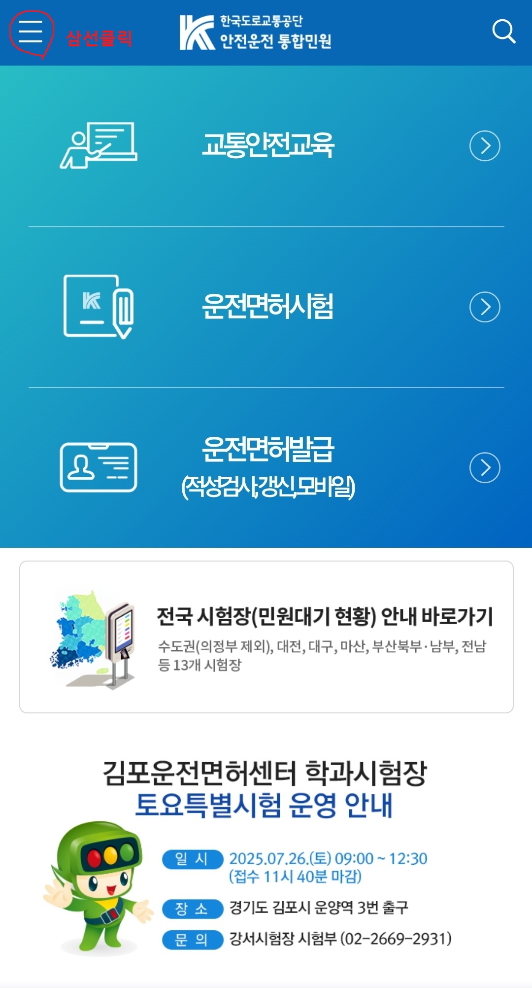 - 운전면허 시험에서 '학과시험문제' 클릭